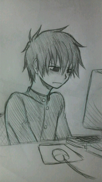 あ。添付した絵は今日の私の状況を表したものです。メール送信の間涙こらえてましたの図。最後の足掻きみたいなもんです。凹んだ時ほど絵描きたくなるんですよ…f(^_^;
