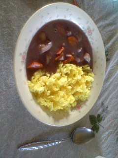 以前作ったアロマカレーです。不気味なコントラストが目に痛い…!(ノ、-;)
