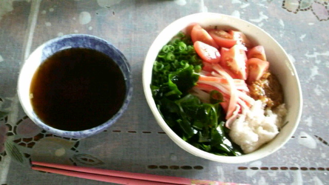 そして写メは祭に全く関係ない昼食、具だくさんころうどん。余ってた食材でパパーッと