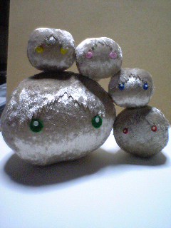 緑はちょっと大きめに作ろうと思って大きくなりすぎました。元祖は赤目なんですが